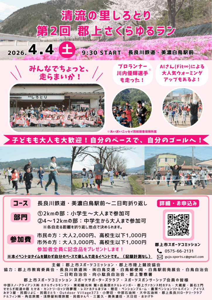 清流の里しろとり 第2回「郡上さくらゆるラン」を2026年4月4日(土)に開催します。